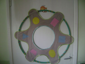 "Інтелектуальна мішень" Завдання: Розвивати уміння метати в горизонтальну та вертикальну ціль, закріплювати геометричні фігури, цифри, колір. |